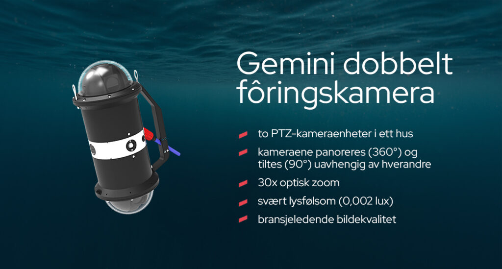 En stor fordel med Imenco Aqua sine Gemini-kameraer er tyngden. De tunge kameraene ligger svært stabilt i merden – også når det er høy sjø. Det gir klare og tydelige bilder inne på fôrsentralen.