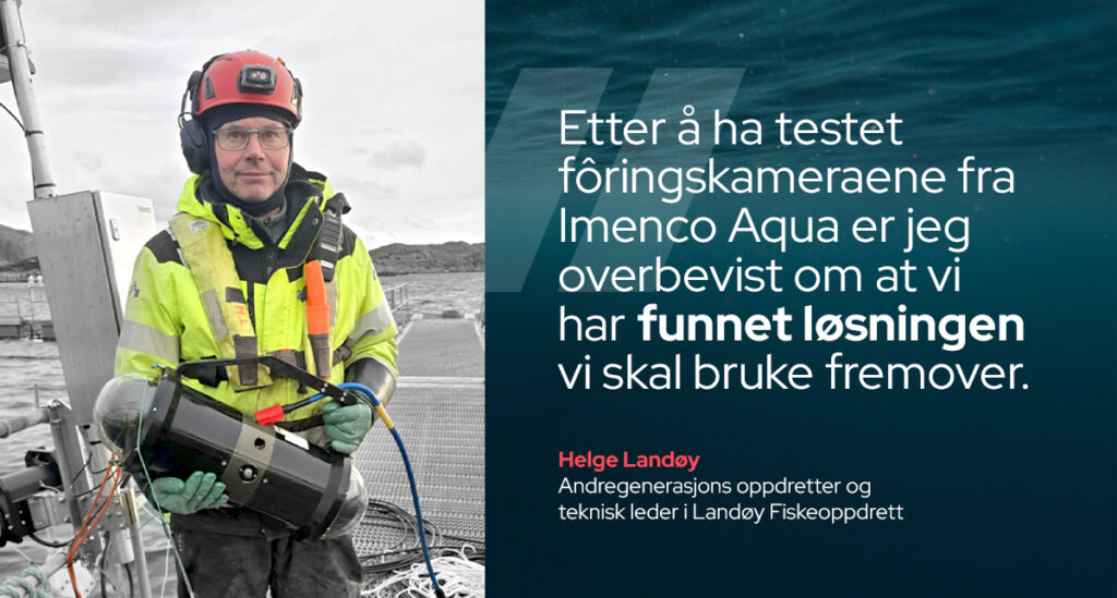 — Vi har vært litt konservative i driften frem til nå, med visuell overflateinspeksjon ved fôring. Etter å ha testet fôringskameraene fra Imenco Aqua er jeg overbevist om at vi har funnet løsningen vi skal bruke fremover, sier Helge.